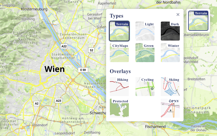 We offer different map tiles in raster and vector formats for the best interactive map experience. Our map tiles are compatible with all popular map rendering libraries and technologies, including Leaflet and MapLibre GL.